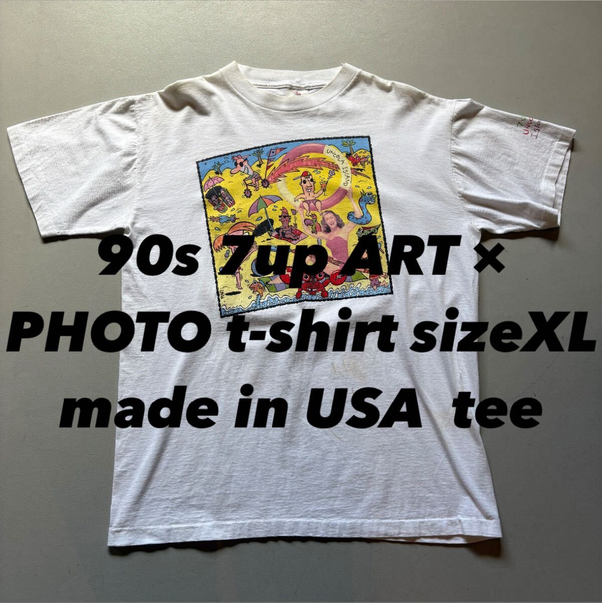 > 90s 7up ART × PHOTO t-shirt sizeXLmade in USA tee 90年台 セブンアップ tシャツ アメリカ製 半袖
