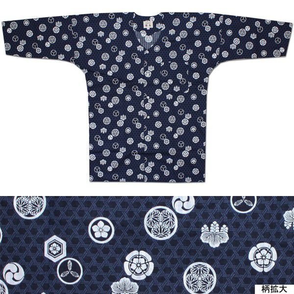 - お祭用品/肉襦袢 鯉口シャツ 家紋 208紺 中(大人用)