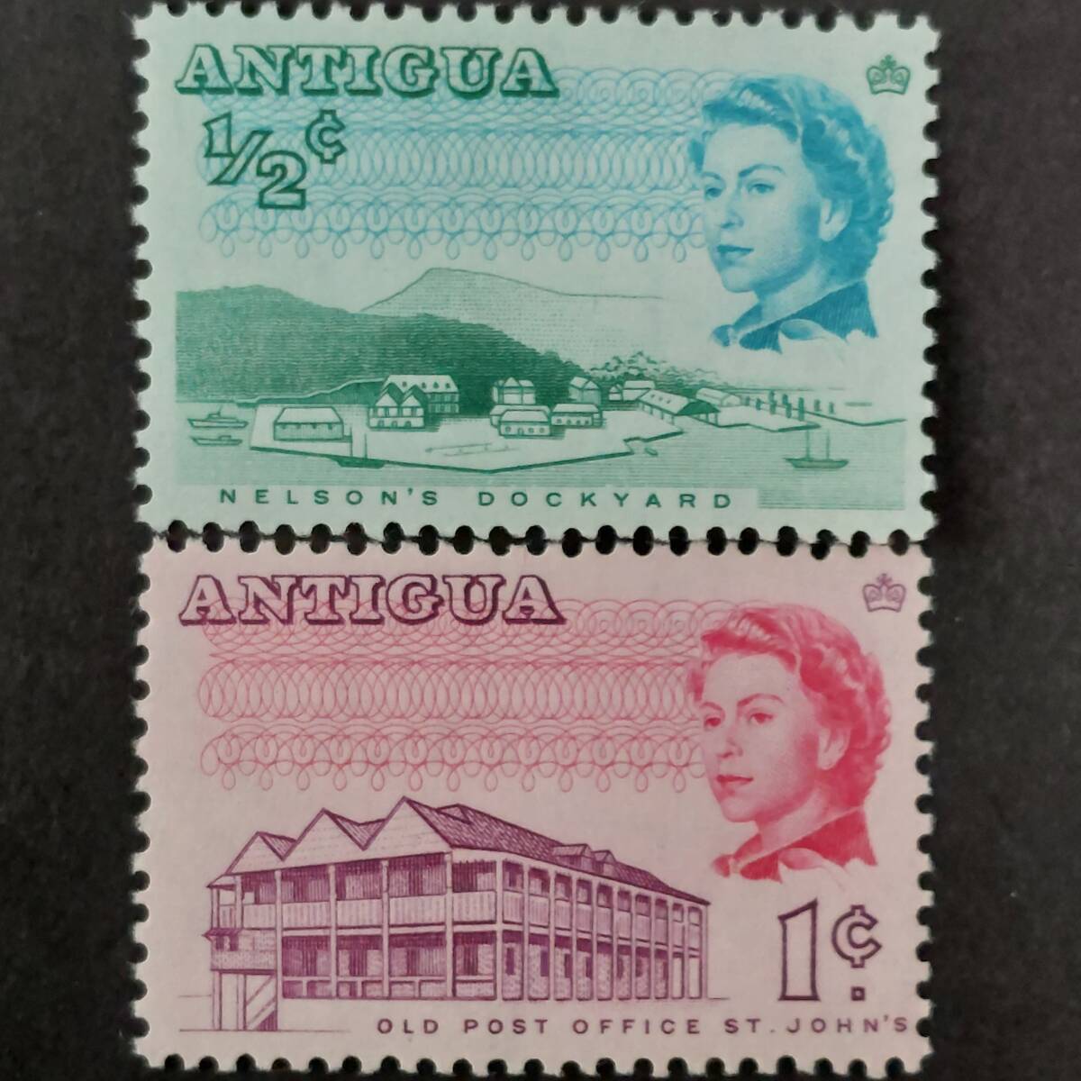 > K789 アンティグア・バーブーダ切手「建物シリーズ切手2種セット:ネルソンズ・ドックヤード、セント・ジョンズ旧郵便局」1966年発行 未使用