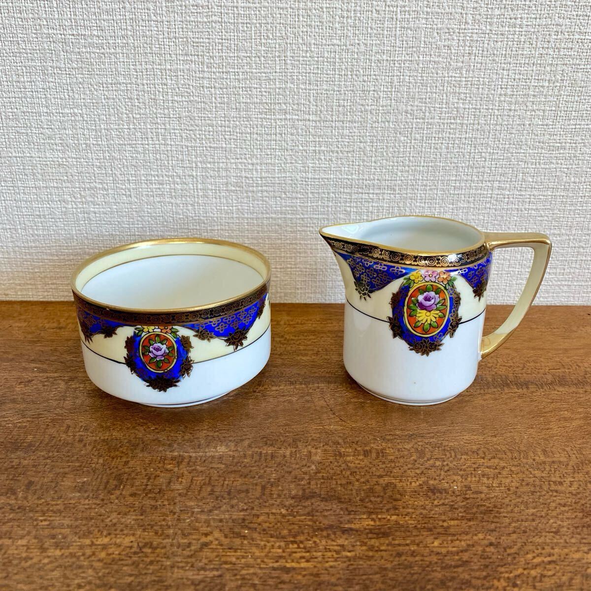 - オールドノリタケ クリーマー シュガーボウル セット / 金彩 花柄 日本製 マルキ印