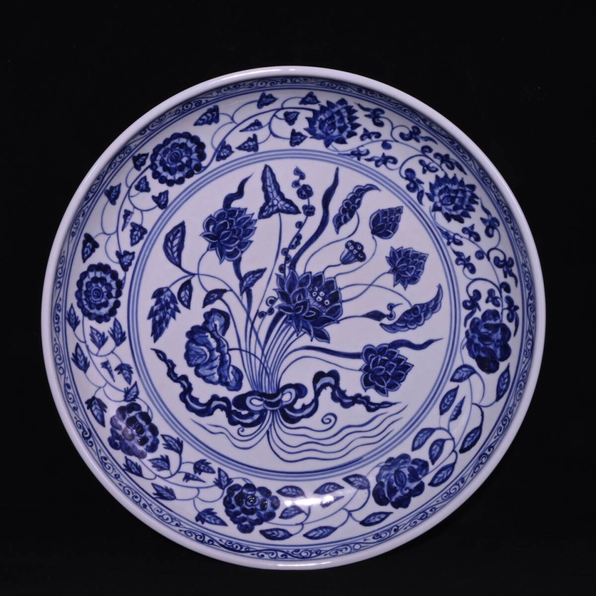 > 多宝閣 ■ 201257 中国磁器 中国骨董【明代の宣徳年間に作られた蓮華文の青白磁皿】工芸品 施釉陶 陶芸 置物 收藏品 孤品
