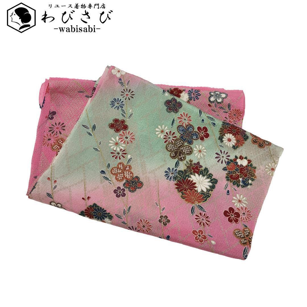 - 和装小物 帯揚げ 正絹 美しい花模様 暈し ピンク 縮緬 C-5822 着物 きもの kimono 和服 和装 中古 リサイクル着物 【送料無料】