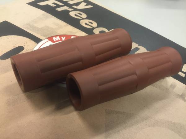 - ミリサイズ 樽型 グリップ ブラウン 茶 トラッカー カフェ TW200 SR400 SR500 XS650 チョッパー カフェレーサー カスタム クラブマン