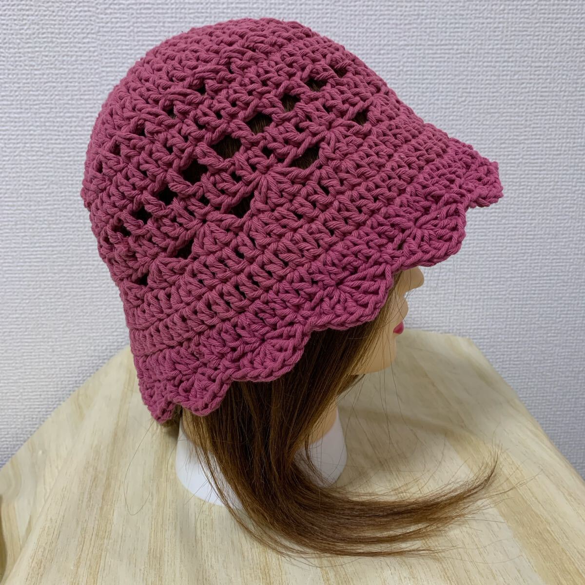 - 【a92】コットン100% レース編み フリル カシス バケットハット 帽子