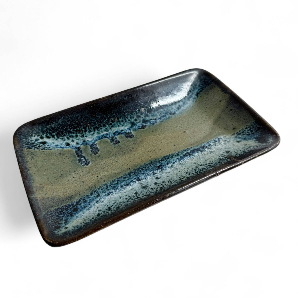 - N7-608 美品 こぶ志焼 平皿 釉薬 海鼠 角皿 和食器 陶器 北海道 岩見沢