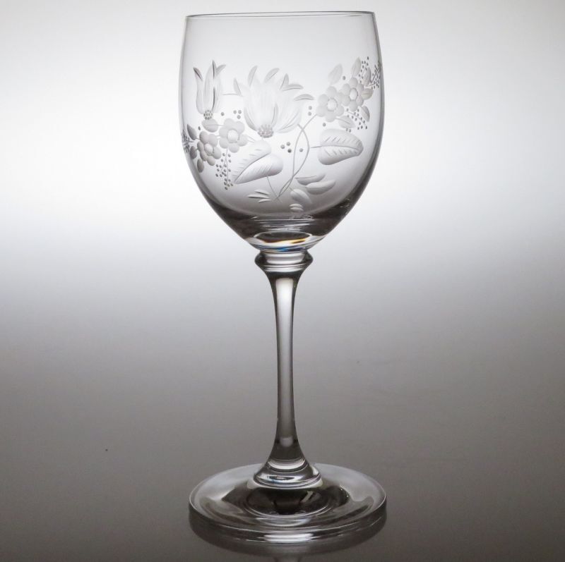 - マイセンクリスタル グラス ● フラワー エングレーヴィング 花柄 ブーケ ワイン グラス 17cm yw5 マイセン Meissen