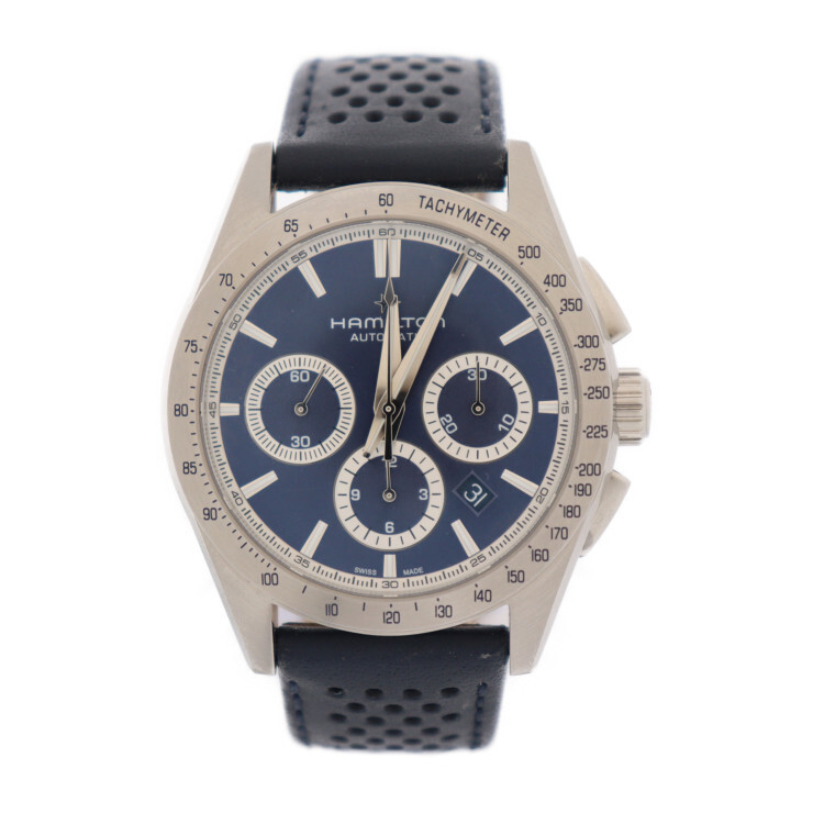 - 美品 ハミルトン ジャズマスター パフォーマー オートクロノ 腕時計 H36616640 SS 青文字盤 裏スケ【本物保証】
