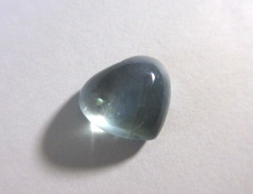 淡いグリーンブルーのグラデーションになった、ハート形のフローライトです。透明感とテリがあります。非加熱。