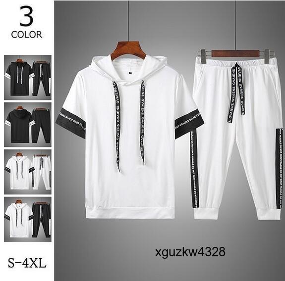 - ジャージメンズ セットアップ半袖スエット2点セットサマートレーナー夏 上下セットハーフパンツルームウェア 黒白 M~4XL
