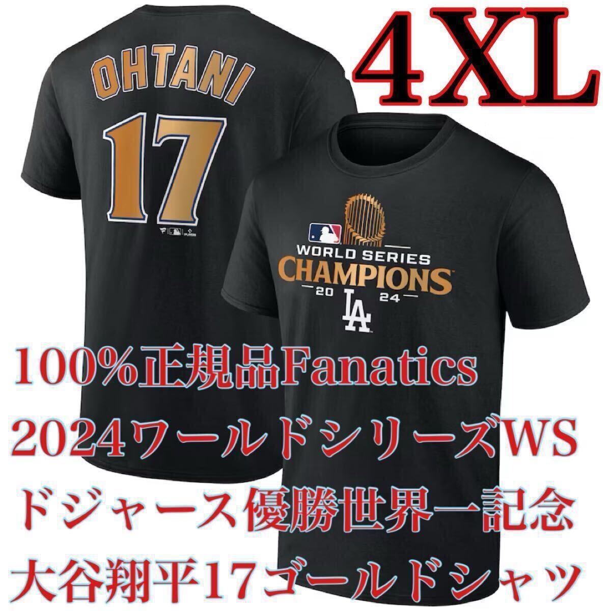 - 新品4XL100%正規品Fanatics大谷翔平17優勝記念ワールドシリーズ2024WorldSeriesロサンゼルス・ドジャース日本未発売MLB半袖ゴールドTシャツ