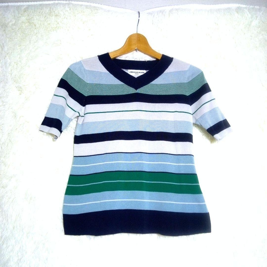 - クリスチャンオジャール【7】レディース 半袖ニット ストライプ Vネック 綿混