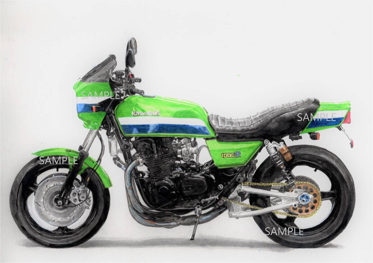- A4プリントです カワサキZ1000Rローソンレプリカ 水彩画 バイクイラスト