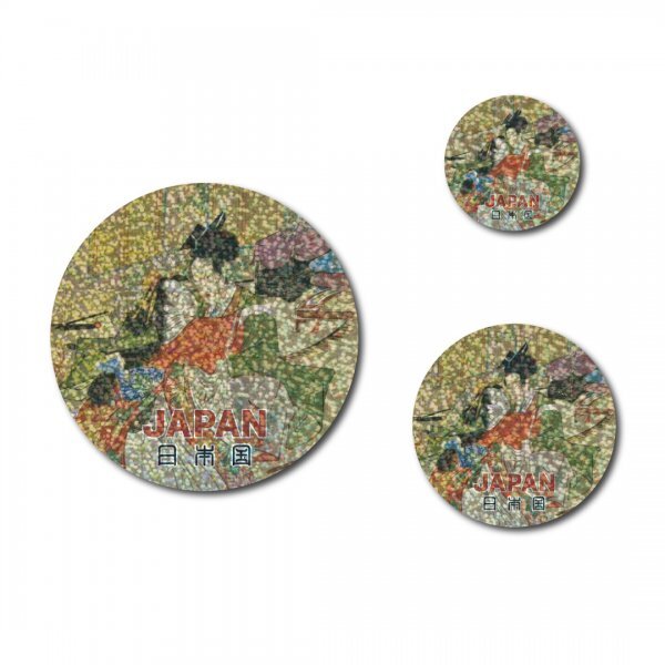 > 日本製 浮世絵 ステッカー 3点セット 丸型 新品 男女 ホログラム グロス 日本の美しさ お土産 プレゼント おしゃれ キラキラ 派手 和柄