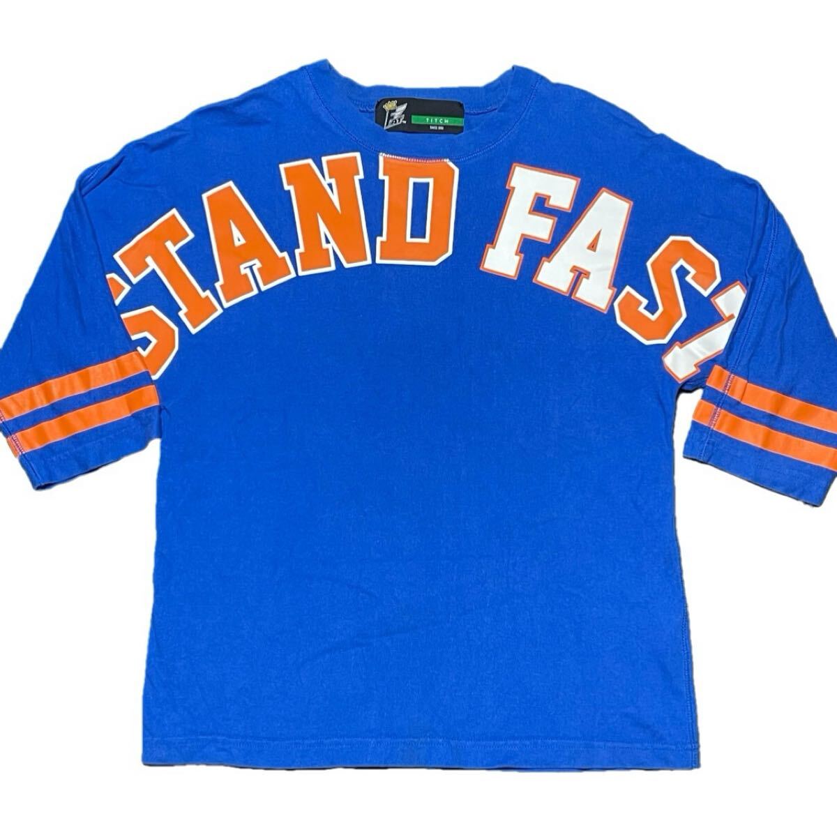 - FAT TITCH フットボールシャツ型五分袖Tシャツ ブルー エフエイティー ニックスカラー