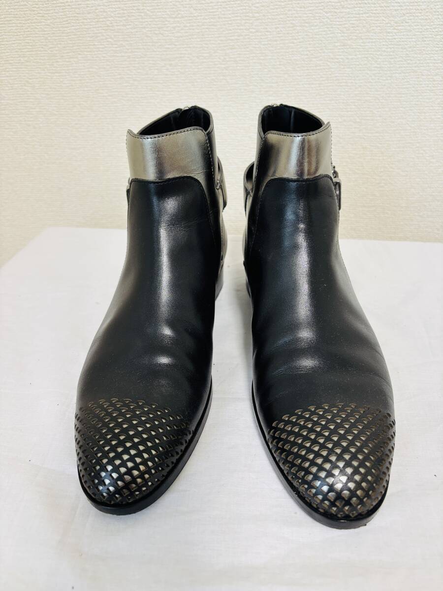 > セルジオロッシ sergio ross 数回着のみ ジッパー付き ショートブーツ ブラック×シルバー サイズ39 送料込み A62980