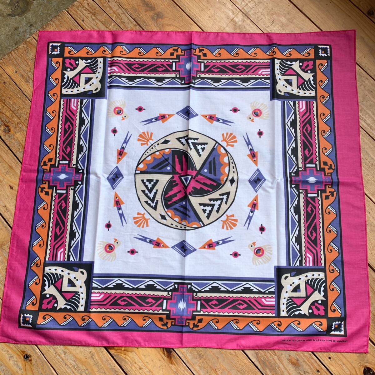 - 送料無料 Vintage ネイティブ柄 大判 バンダナ ハンカチ アメリカ仕入れ 雑貨 ピンク コーデファッション おしゃれ ヴィンテージ A1415