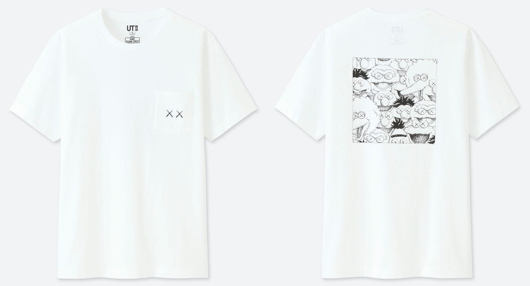 > 【新品!!】 KAWS SESAME STREET セサミストリート ユニクロ 半袖 Tシャツ 白 ホワイト ポケット 刺しゅう バックプリント XS UT カウズ
