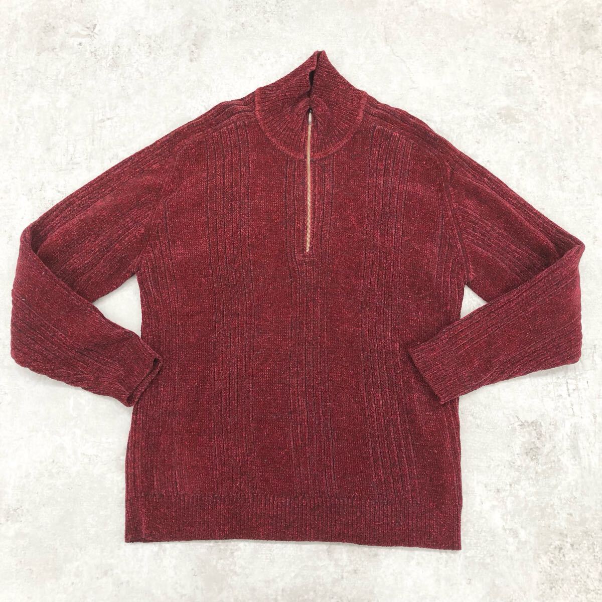 - 1750〓 DURBAN ダーバン ハーフジップセーター メンズ サイズLL レッド トップス ニットセーター ハイネック 長袖 カジュアル