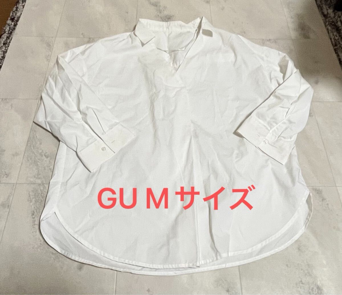 > GU ジーユー Mサイズ スキッパーカラー オーバーサイズ 長袖シャツ 白 ホワイト