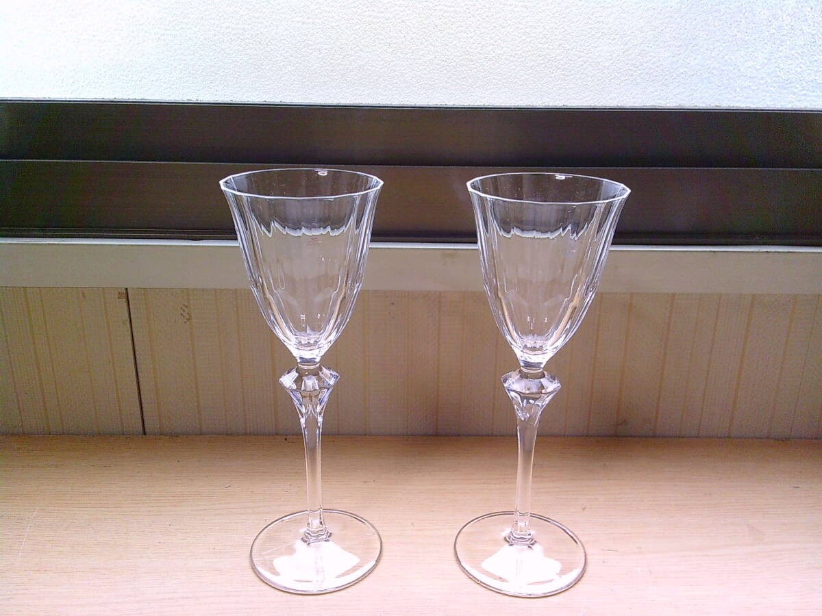 > ■ く-690 クリスタル グラス 2個 未使用 ダマンティス ペアワイングラス クリスタルダルク ※最大)高20.5 口径7 底径6.7cm 総重量650g