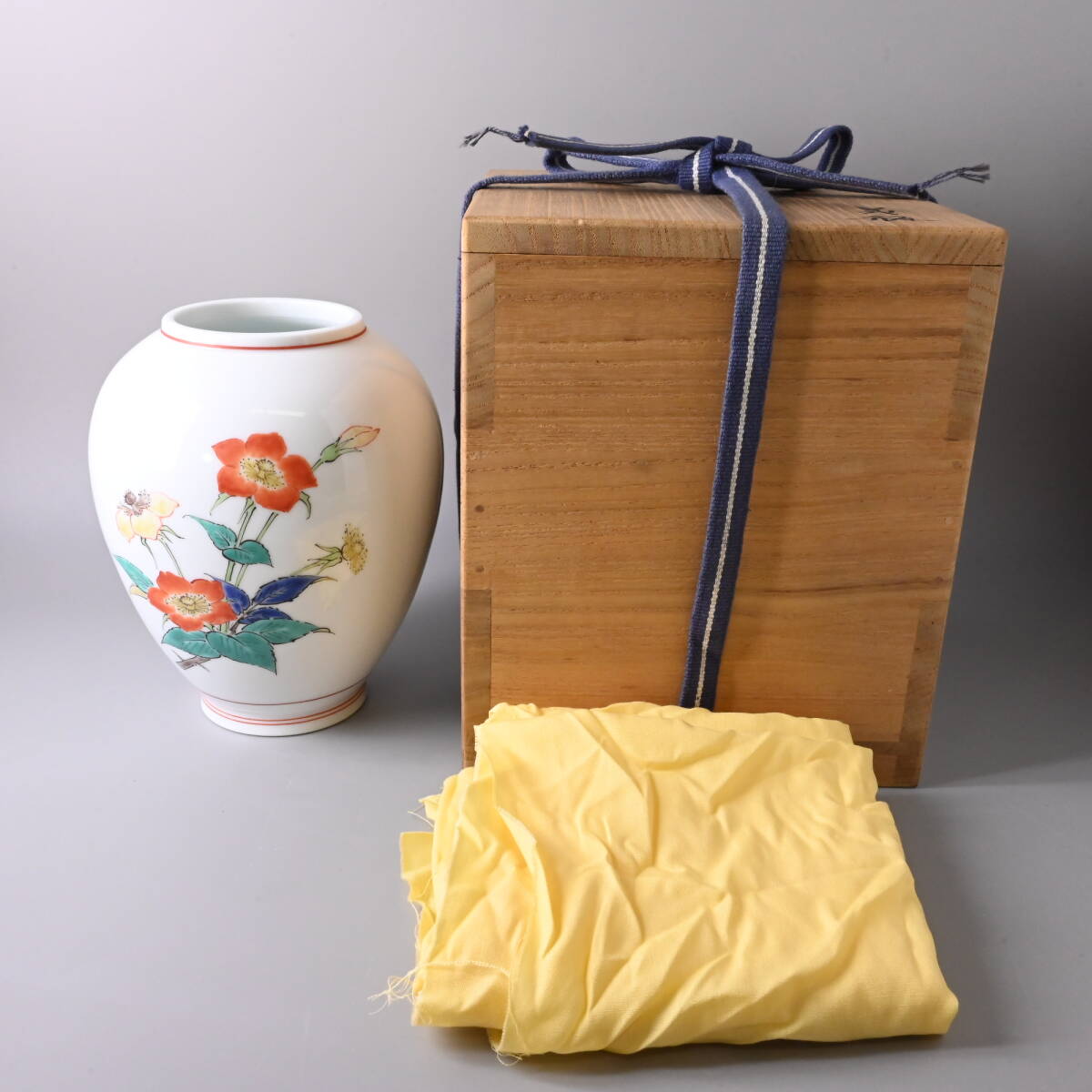 - R8001 希少 酒井田正 錦 苺花文 花瓶 本人作 十四代酒井田柿右衛門 人間国宝 高13cm 径11cm