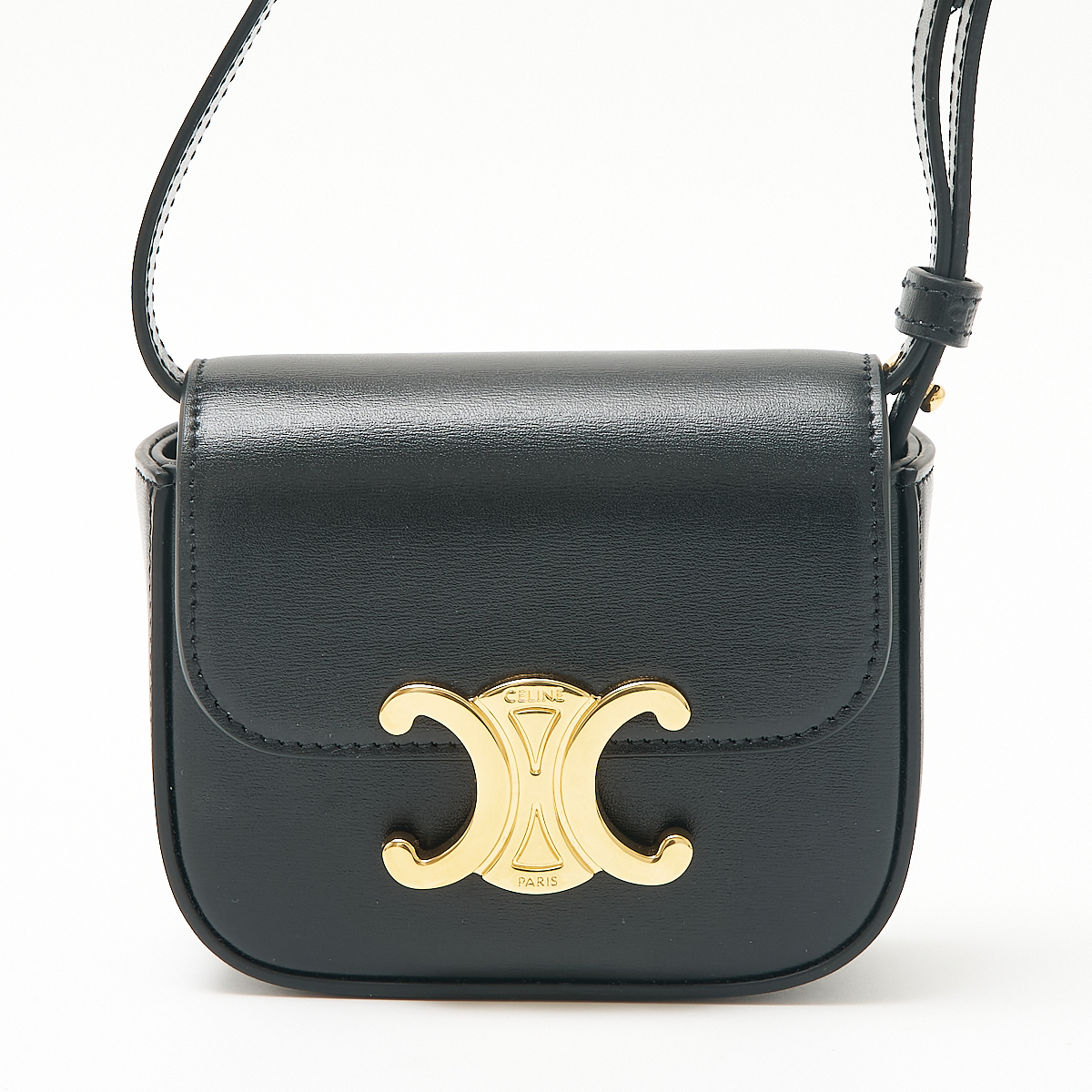 > CELINE セリーヌ ミニ クロード 10I513DPV.38NO コンパクト ショルダーバッグ カーフスキン ブラック×ゴールド金具 レディース