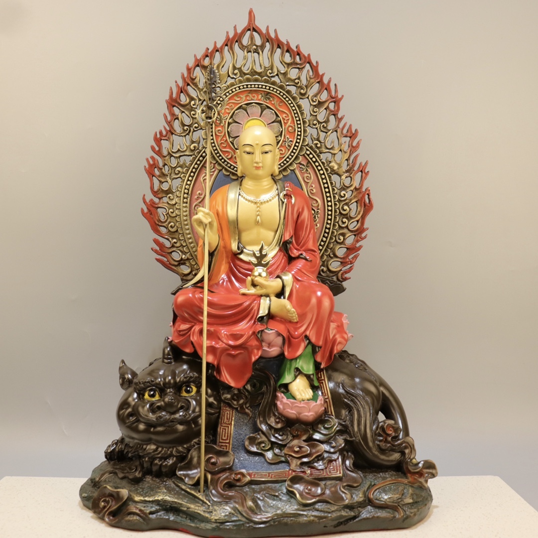 - ◆旧家蔵出◆古美術 大清時代 古銅製 塗金 彩絵 地藏王菩薩 仏造像 細密細工造 置物 擺件 古賞物 骨董 時代物 A13