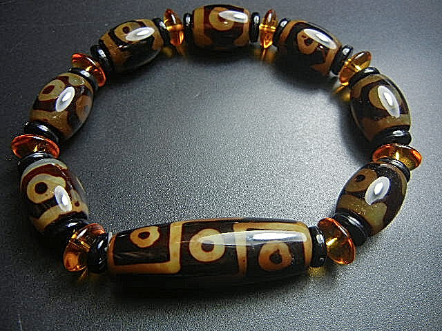 - ★西蔵天珠数珠★JFV3526 牙黄 三眼天珠 数珠 12.5*16mm牙黄九眼天珠付き38mm超勧め