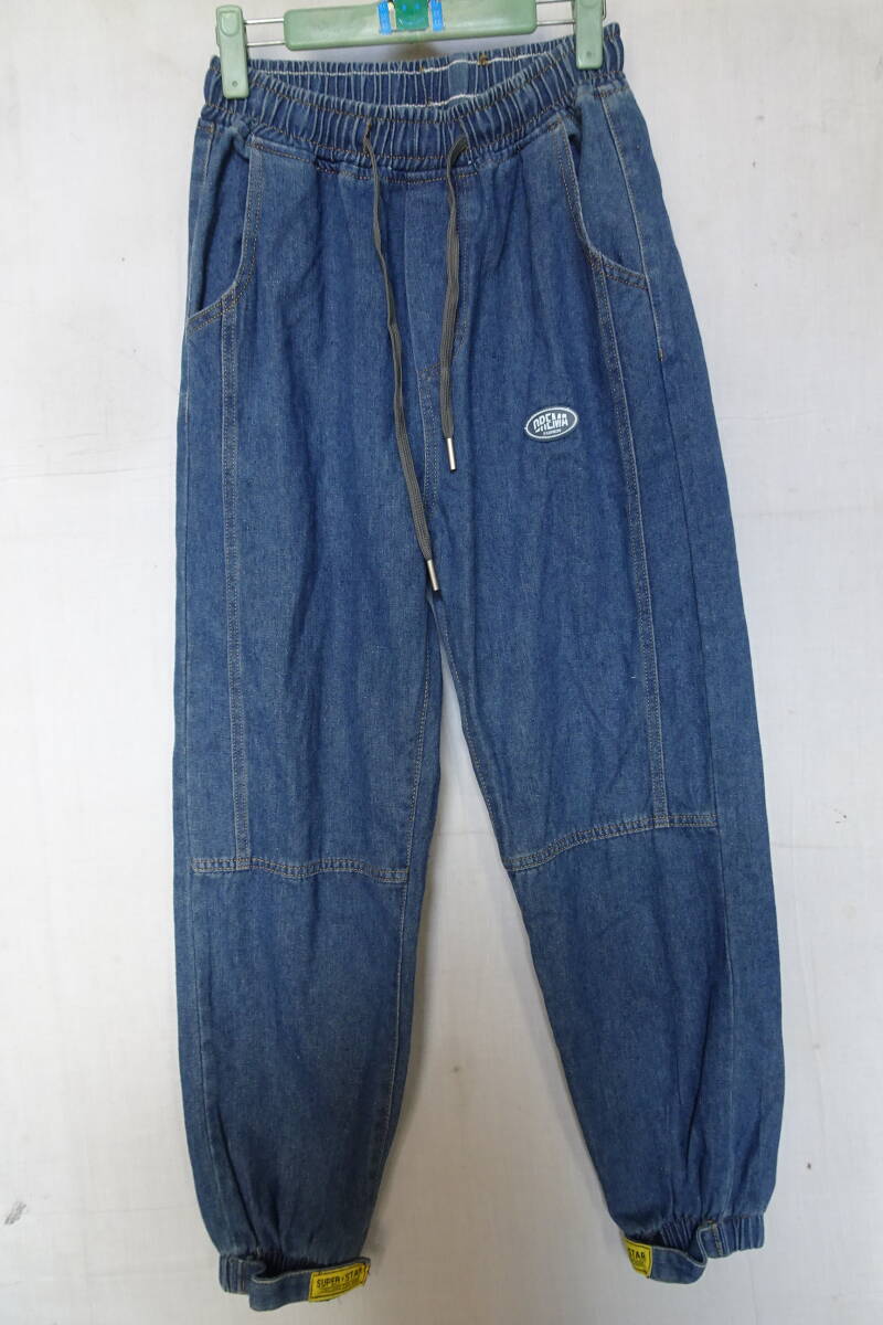 - DREMA FASHION/デニムジョガーパンツ/ウエスト・裾ゴム/ワイドストレート/裾テープベルト/インディゴブルー/Mサイズ(5/9R7)