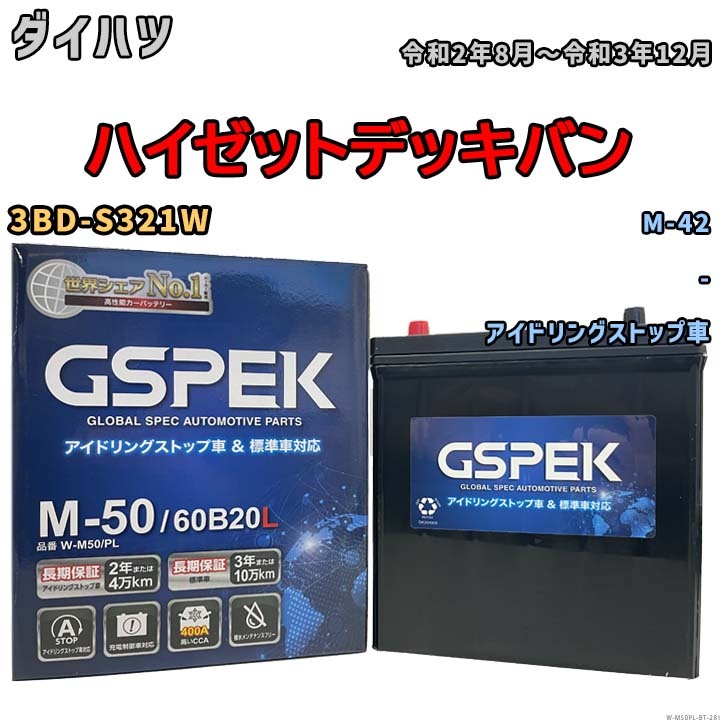- ハイゼットデッキバン M-42互換バッテリー W-M50PL アイドリングストップ/充電制御車用 3BD-S321W 令和2年8月~令和3年12月 GSPEK 281