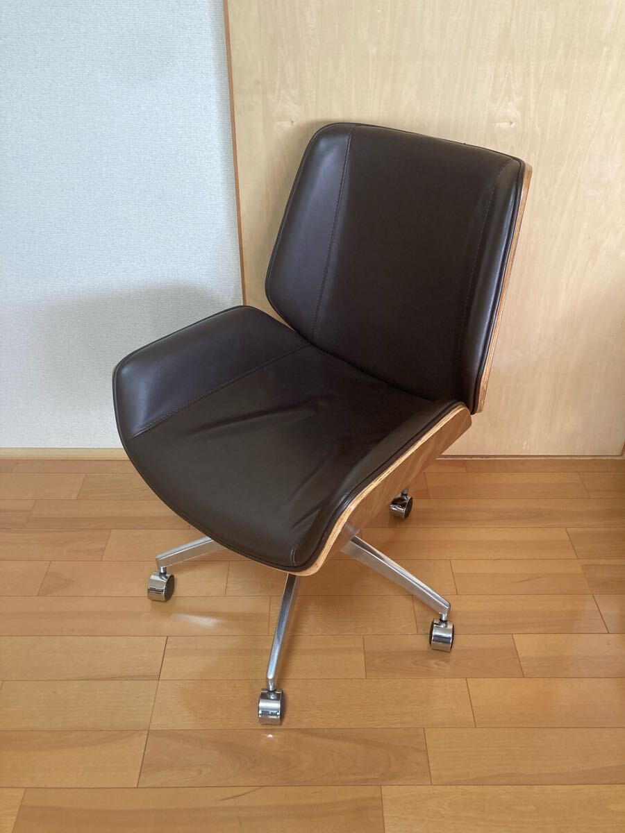- オフィスチェア デスクチェア ブラック 事務椅子 革 レザーチェア 木目 会議チェア 【7424-K16】