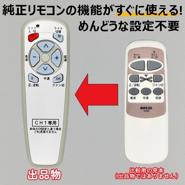 - 【代替リモコン177】ROYAL A990 (CH1) 互換 送料無料 シーリングファン ロイヤル ローヤル 照明