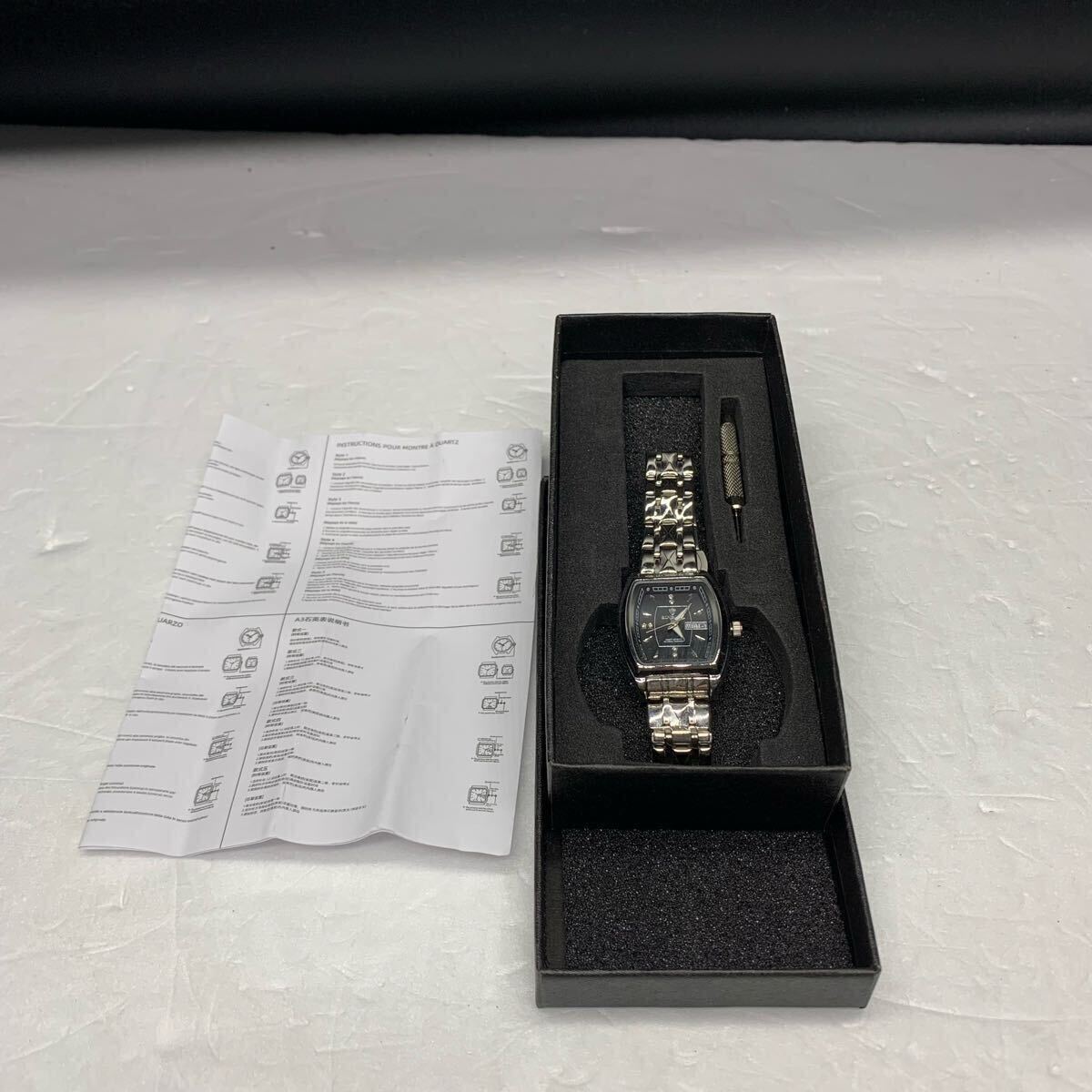- 1573 BINBOND 腕時計 スクエア型 手巻き時計 シルバー ブラック クォーツ メンズ