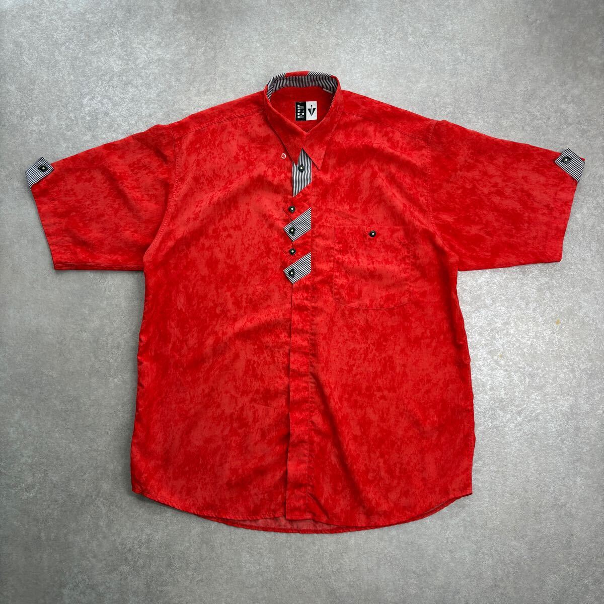 - LECHE 半袖ボタンシャツ デザインシャツ ドレスシャツ 霜降りレッド Lサイズ