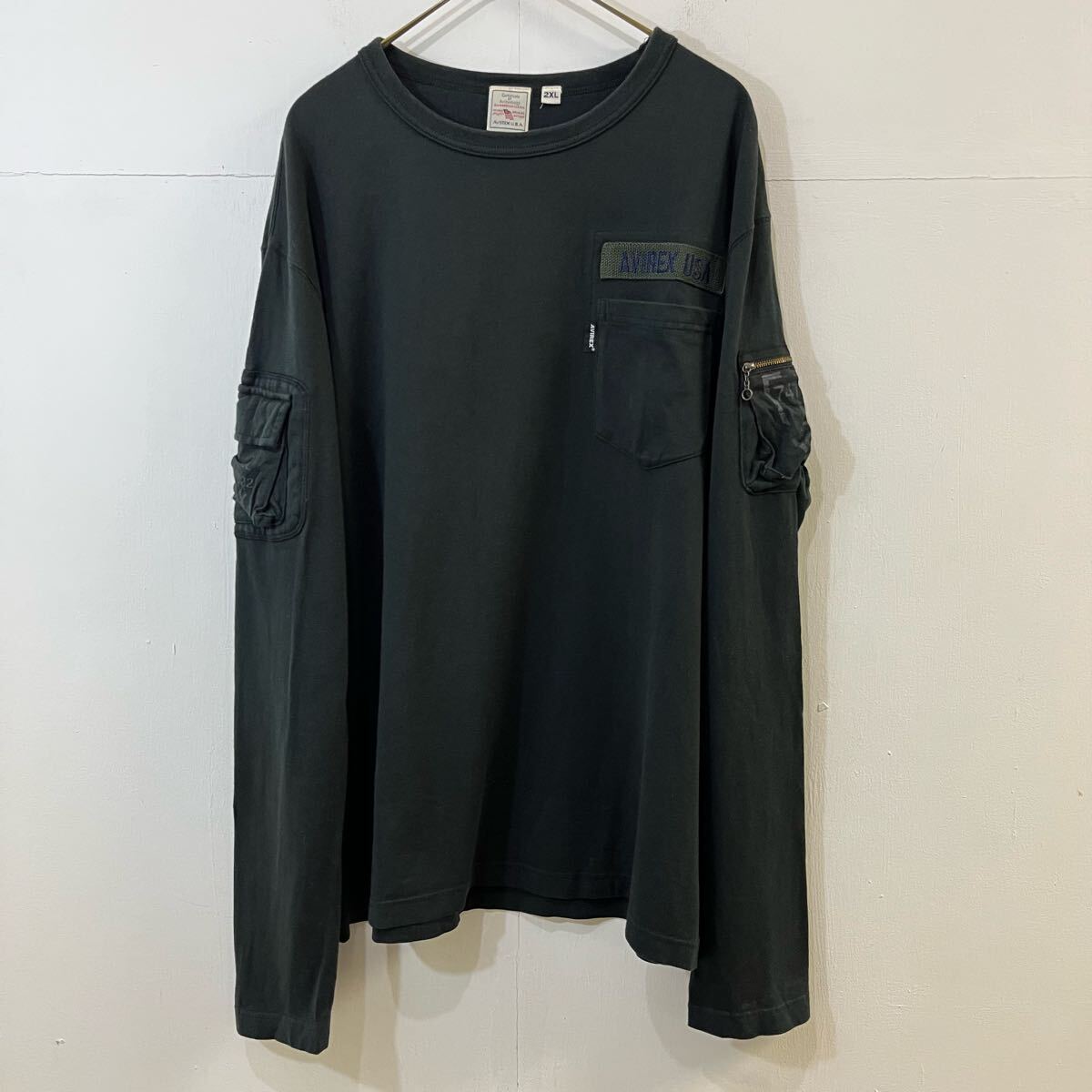 - AVIREX 長袖Tシャツ 長袖カットソー ミリタリーデザイン プリント ワンポイント ブラック 黒 アヴィレックス【レターパックプラス郵送可】A