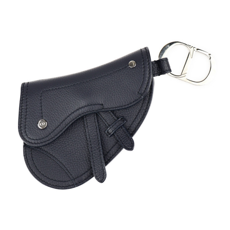 - 超美品 ディオール サドルポーチ コインケース レザー ネイビー アクセサリーポーチ キーリング バッグチャーム 【本物保証】
