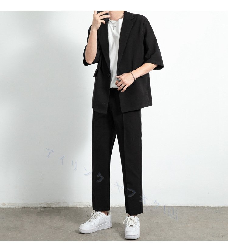 > ☆新品メンズ スーツ ビジネススーツ スーツセットアップ 半袖 テーラードジャケット 上下セット フォーマルスーツ パンツスーツ黑 M~3XL