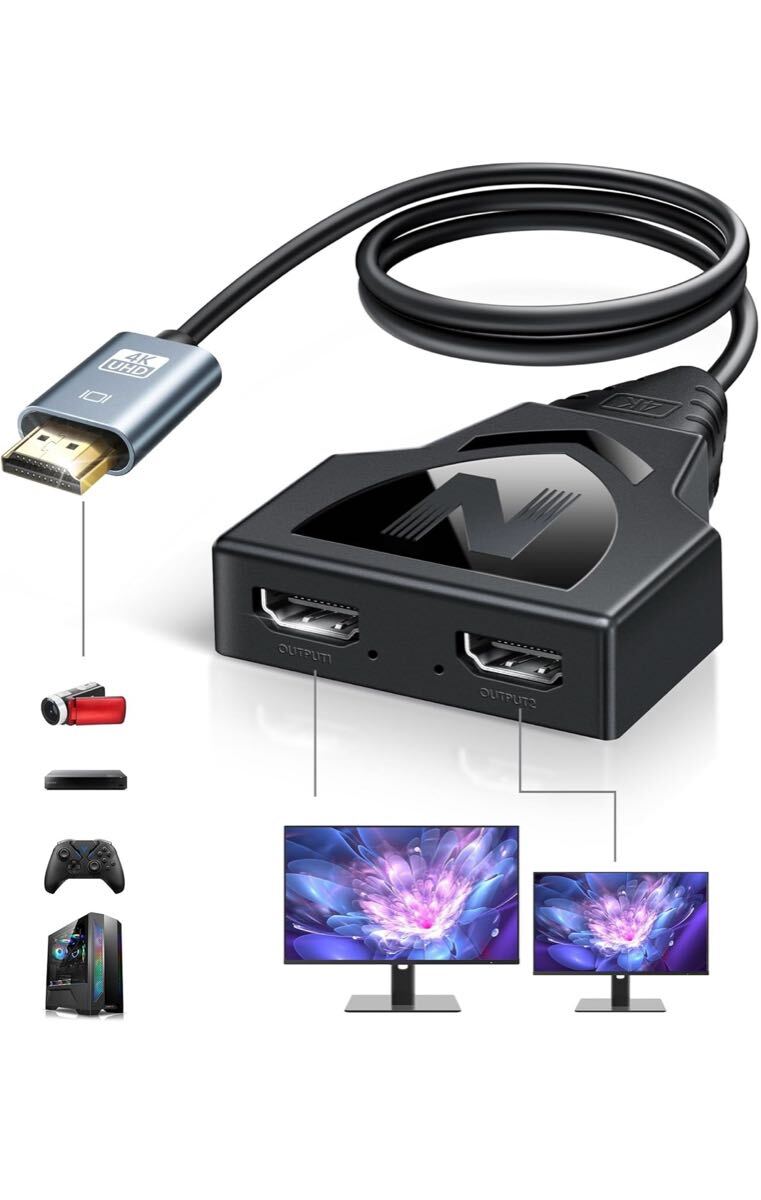 > 【2025新型HDMIケーブル分配器】NEWCARE 4K HDMI スプリッター1入力2出力 同時出力 HDMI HD、LED、LCD用 1対2