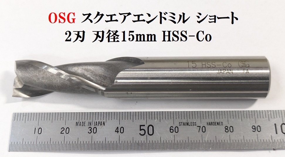 - L41★OSG ハイススクエアエンドミル ショート 2刃 15mm EDS15 シャンク径Φ16mm HSS-Co★状態良★