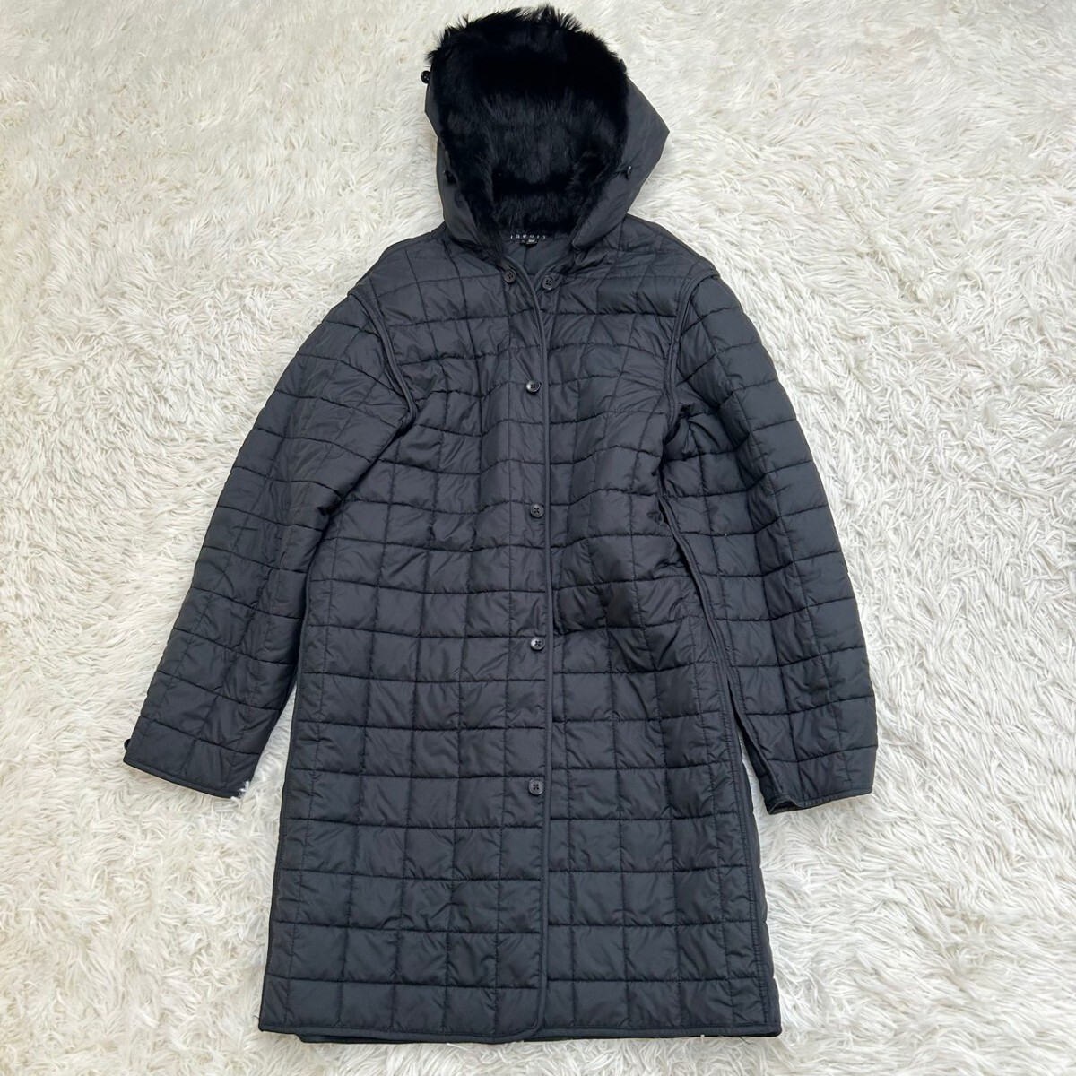 - theory セオリー ファー付き ロングコート キルティングコート ブルゾン ブラックサイズM アウター