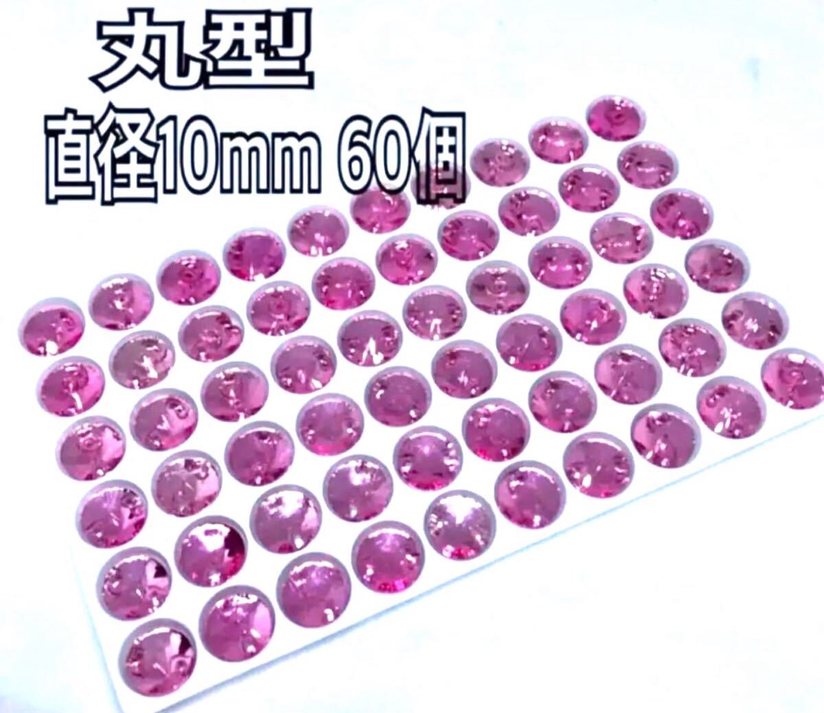 > 直径10mm 60個丸型ガラスビジュー 高輝度 衣装装飾 レオタード 新体操 ソーオン ピンク