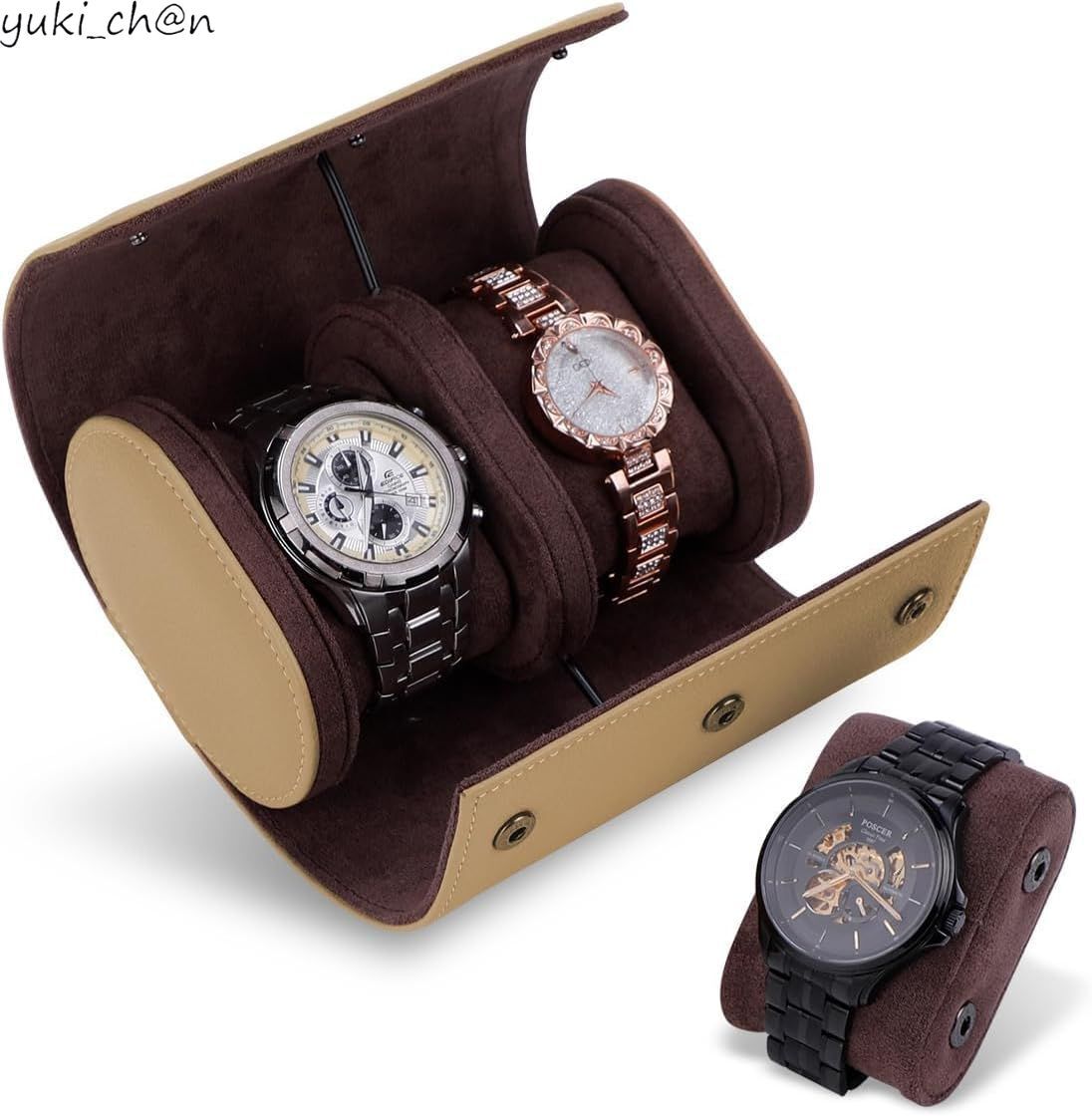- 時計ケース 腕時計ケース 2本収納 防水 耐衝撃 高級PUレザー 旅行 出張用 プレゼントに最適 カーキ色 2本用