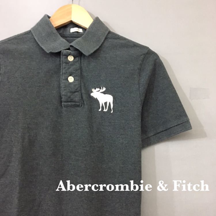 - アバクロンビーアンドフィッチ Abercrombie & Fitch ヘラジカ 鹿 A&F MUSCLE 半袖 ポロシャツ グレー メンズ 男性用 Lサイズ ♭▽