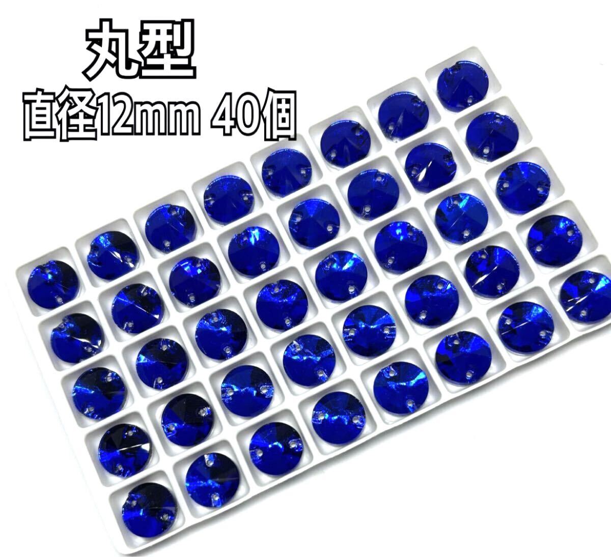 - 直径12mm 40個 丸型ガラスビジュー 高輝度 衣装装飾 レオタード 新体操 ソーオン 青色