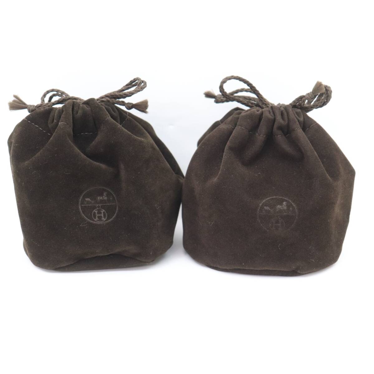 > ITDD4FEFMV2V 即決 本物 HERMES エルメス 時計 巾着袋 布袋 保存袋 ポーチ ブラウン 茶 こげ茶 ロゴマーク 2点セット