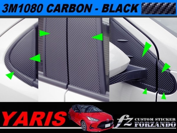 - ヤリス ピラーカバー バイザーレス車用 3M1080カーボン調 ブラック 車種別カット済みステッカー専門店fz MXPH10 MXPA10