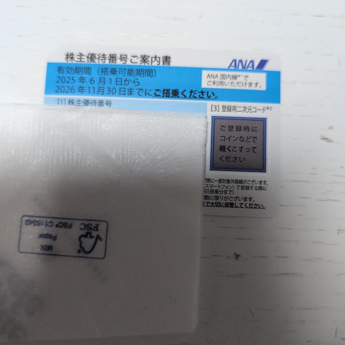 - ANA株主優待券 26年11月30日まで ANA株主優待券