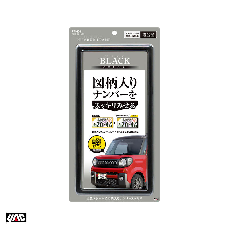 > ナンバーフレーム ブラック 1枚 普通車・軽自動車にオススメ 黄色枠を隠せるフレーム シンプル ヤック/YAC PF403
