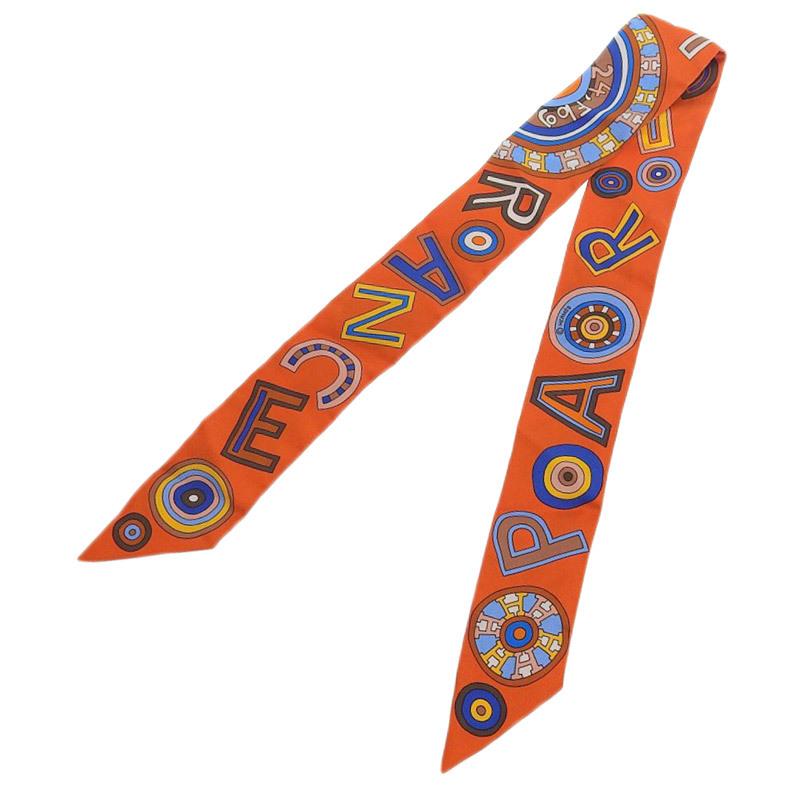 - エルメス HERMES 24FBG ツイリー スカーフ シルク オレンジ 中古 新入荷 HE1056