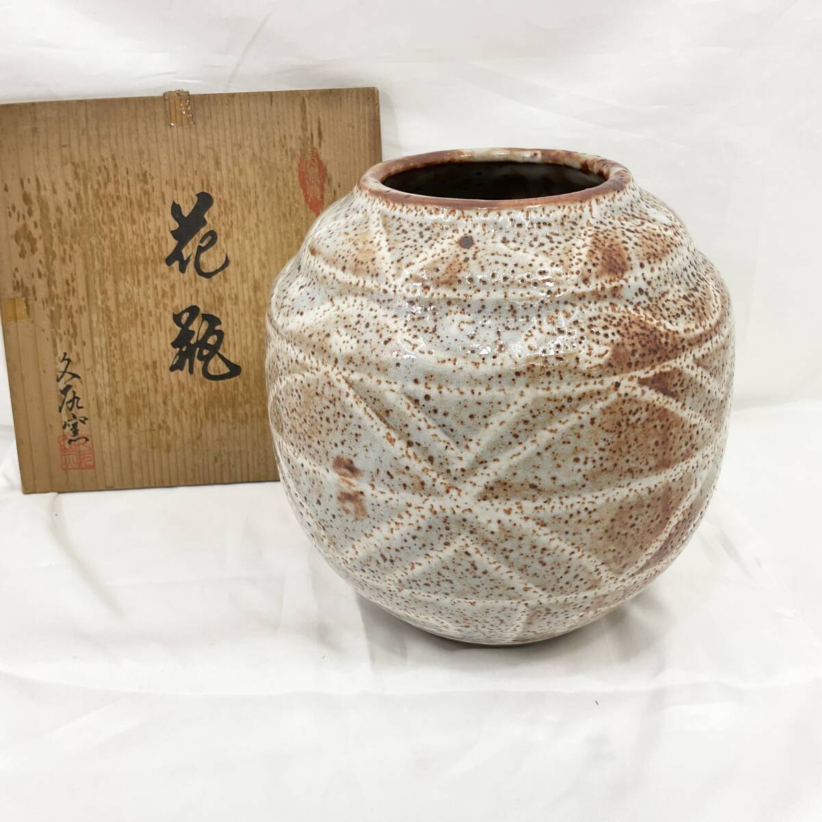 > 美濃焼 久尻窯 志野焼 花瓶 高さ:約21cm 壺 木箱付き 陶器 インテリア コレクション(C1921)